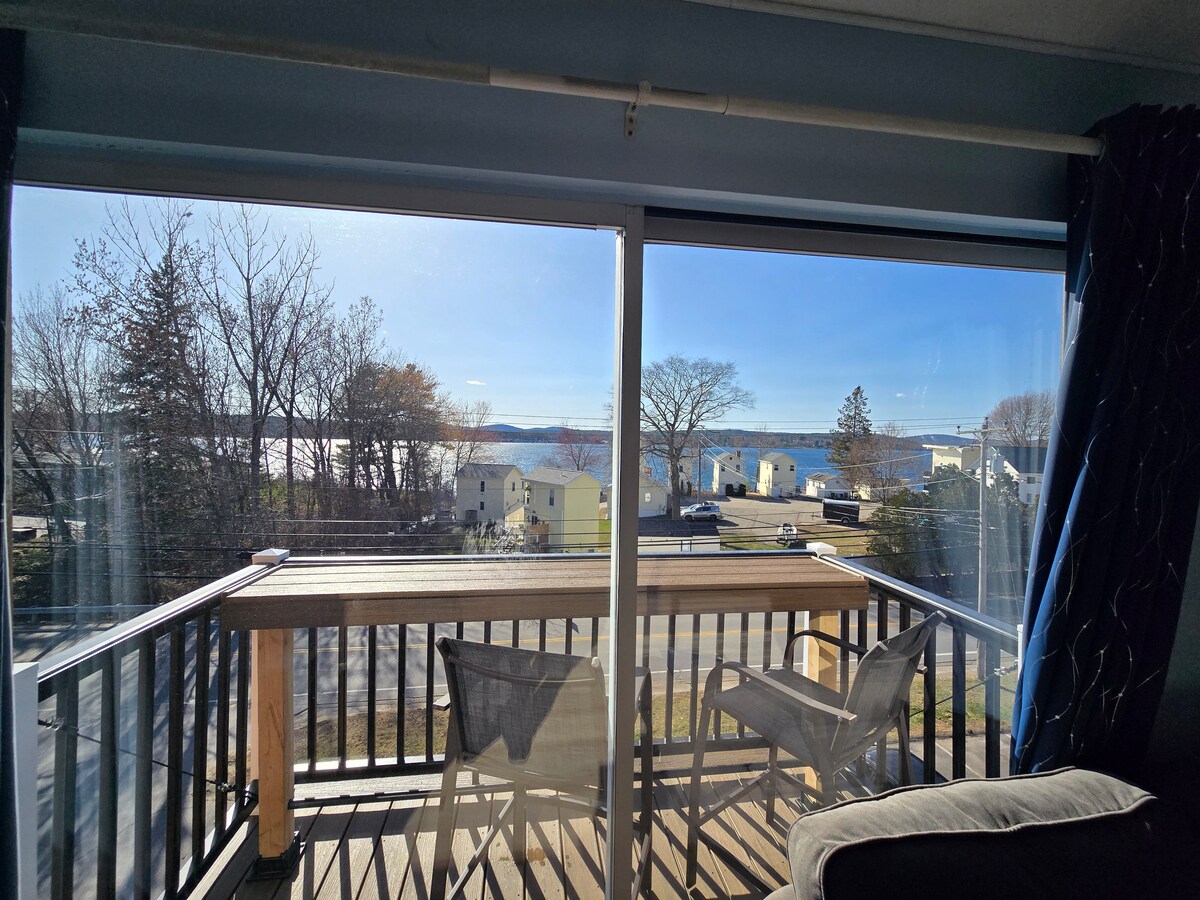 Paugus Bay Lakeview Retreat awaits! This 1 Bedroom, 1 Bath condo can comfortably sleep 6 with a King Bed and Full bed in the bedroom and pull out sleeper sofa in the living room. Enjoy Views of Paugus Bay from the private balcony and from inside the condo! Recently renovated you will find a bright interior, kitchen with full size appliances and amble counter space, bar with seating for 4, and spacious living area with 2 couches